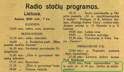 Tamen ĉi tiu ĉarma junulino ne menciis, ke en Kaŭna Radiofono estis regule disaŭdigataj elsendoj en Esperanto. Pri tio legu en artikolo de Antanas POŠKA. La artikolo estas aperigita en Litova Stelo n-ro 3, 1937.